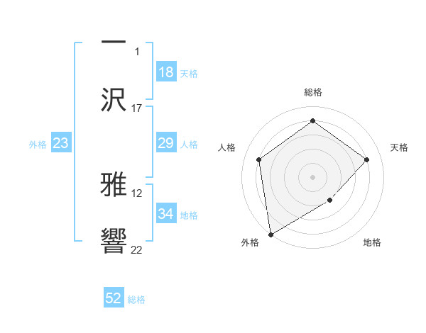 一沢 雅響さんを姓名の画数から五運を鑑定
