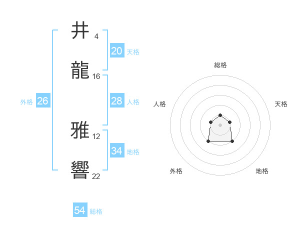 井龍 雅響さんを姓名の画数から五運を鑑定