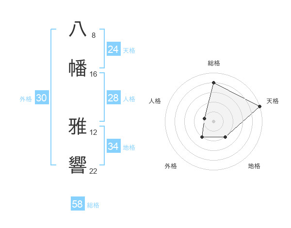 八幡 雅響さんを姓名の画数から五運を鑑定