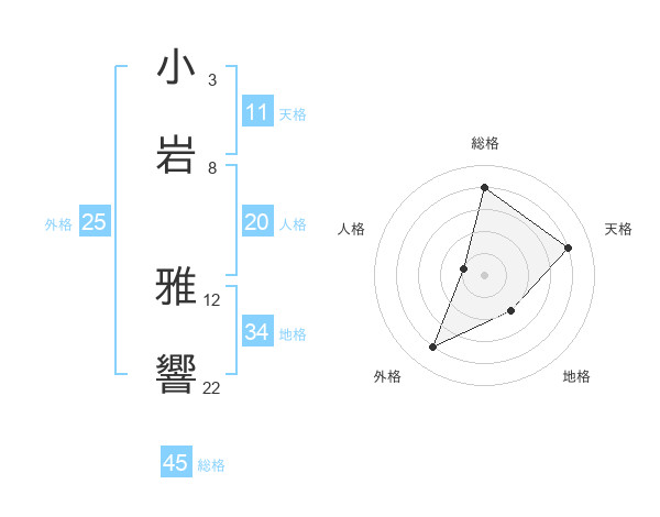 小岩 雅響さんを姓名の画数から五運を鑑定