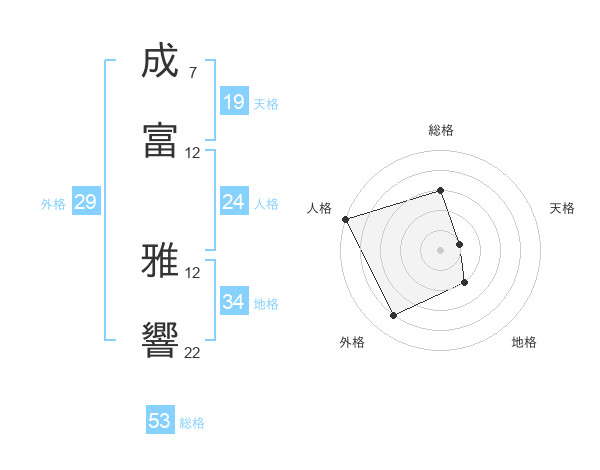 成富 雅響さんの総格は53画の3点!