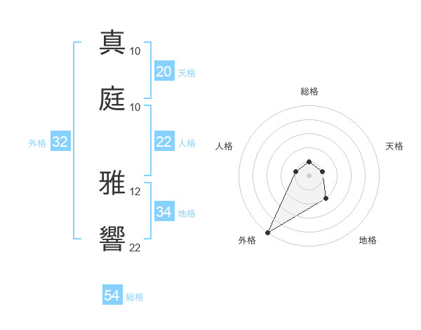真庭 雅響さんの天格は20画の1点!