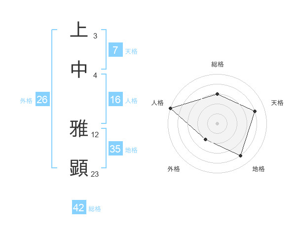 上中 雅顕さんを姓名の画数から五運を鑑定