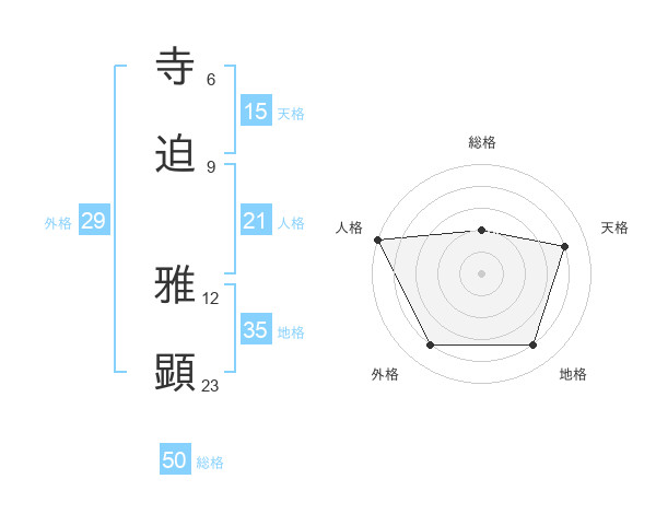寺迫 雅顕さんの天格は15画の4点!