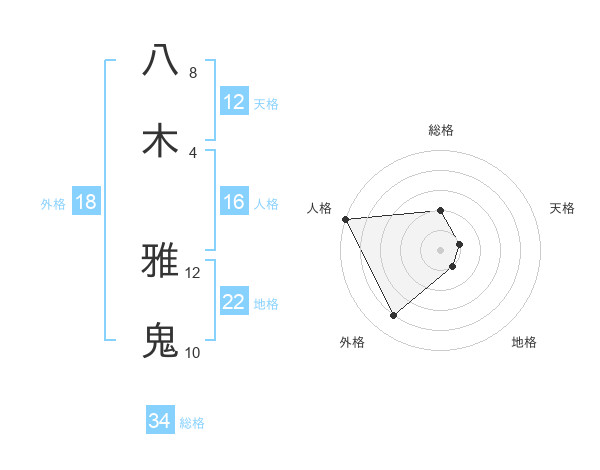 八木 雅鬼さんの総格は34画の2点!