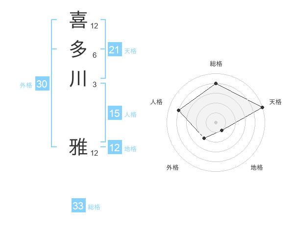 喜多川 雅さんを姓名の画数から五運を鑑定