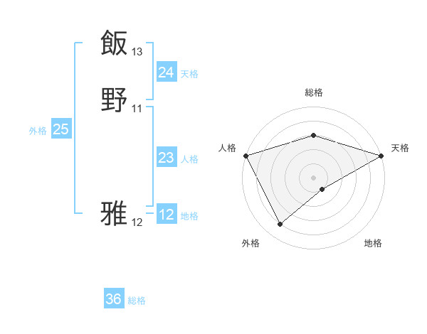 飯野 雅さんの天格は24画の5点!
