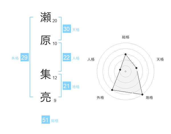 瀬原 集亮さんの総格は51画の3点!