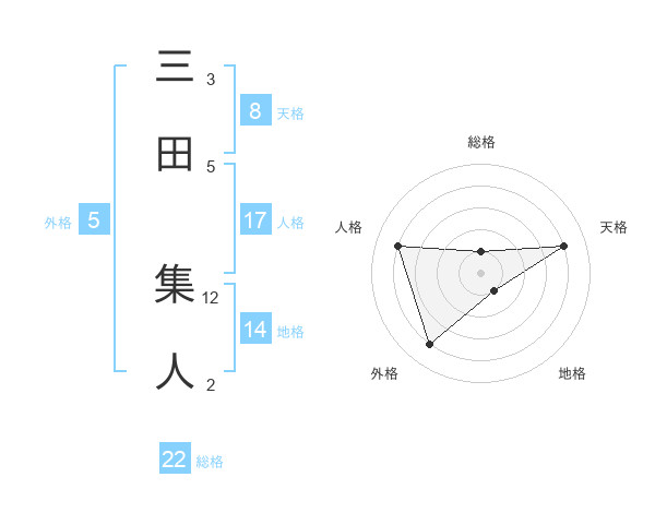 三田 集人さんの総格は22画の1点!