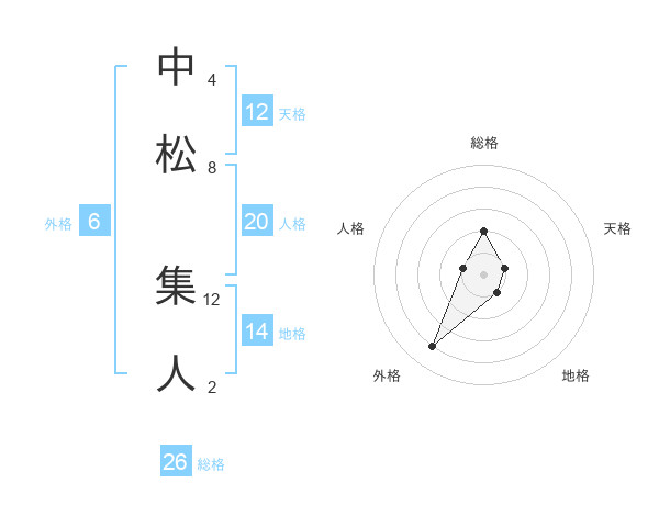中松 集人さんの総格は26画の2点!