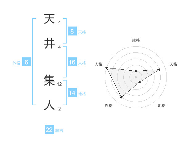 天井 集人さんの総格は22画の1点!