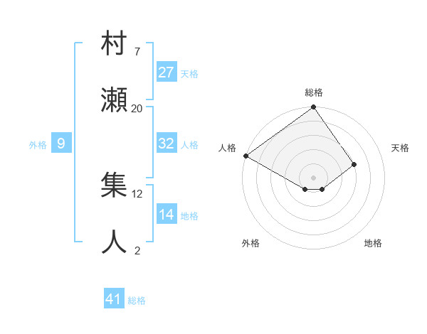 村瀬 集人さんの総格は41画の5点!
