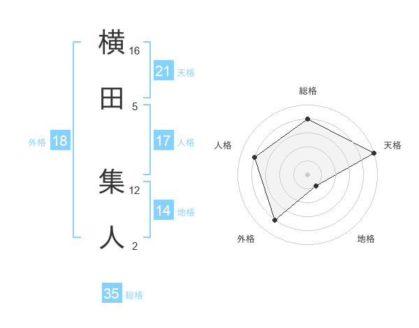 横田 集人さんの天格は21画の5点!