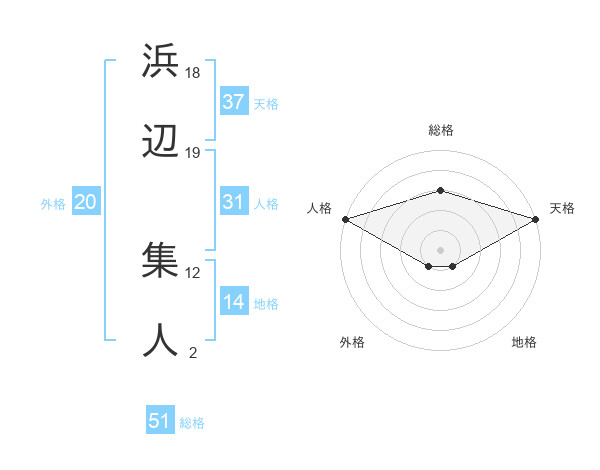 浜辺 集人さんを姓名の画数から五運を鑑定