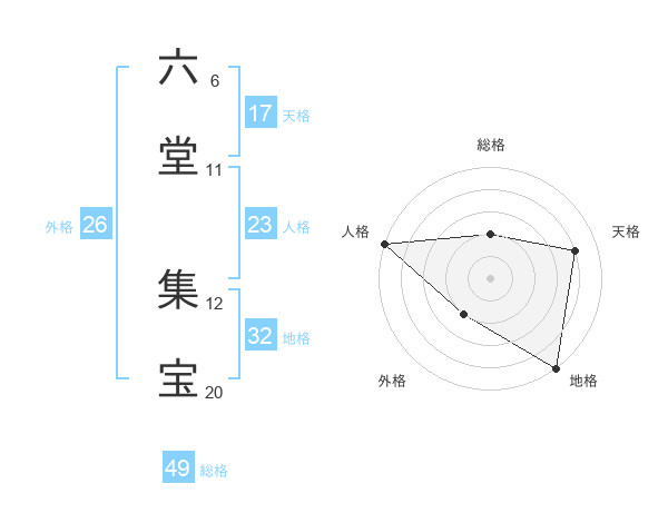 六堂 集宝さんの総格は49画の2点!