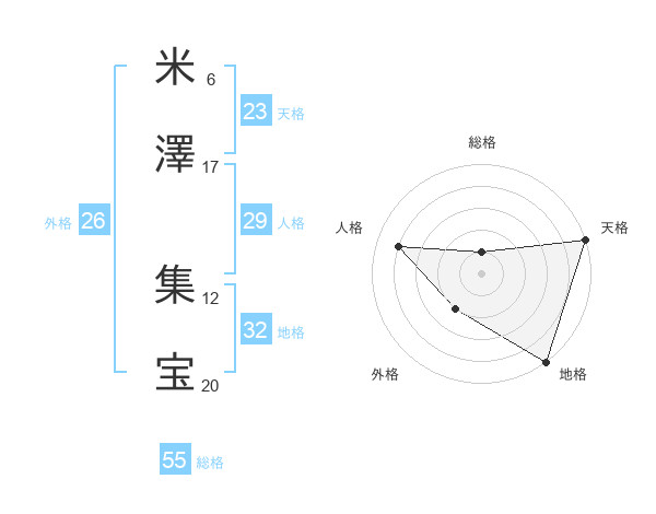 米澤 集宝さんを姓名の画数から五運を鑑定