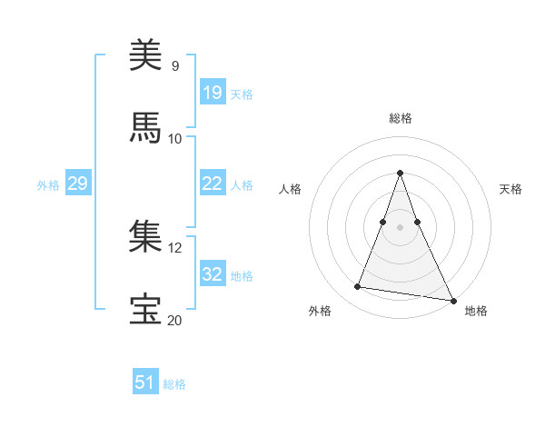 美馬 集宝さんの総格は51画の3点!