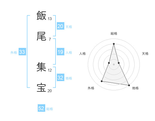 飯尾 集宝さんの総格は52画の4点!