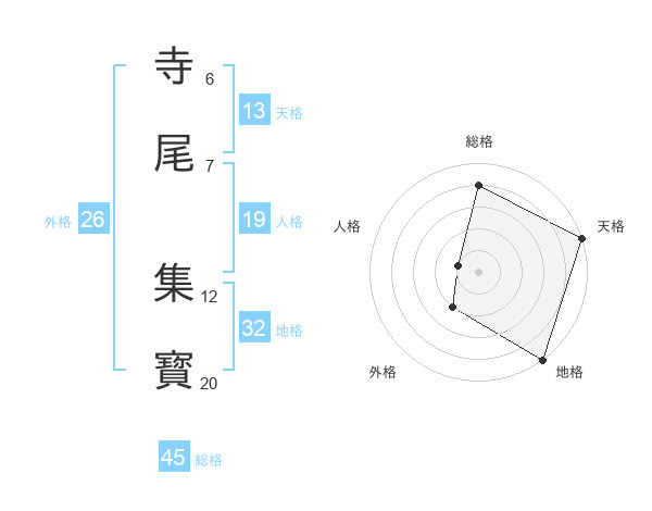 寺尾 集寳さんを姓名の画数から五運を鑑定