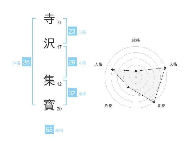 寺沢 集寳さんを姓名の画数から五運を鑑定