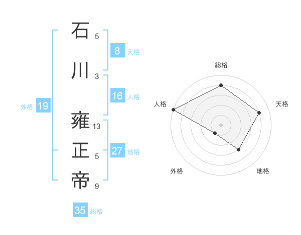 石川 雍正帝さんの総格は35画の4点