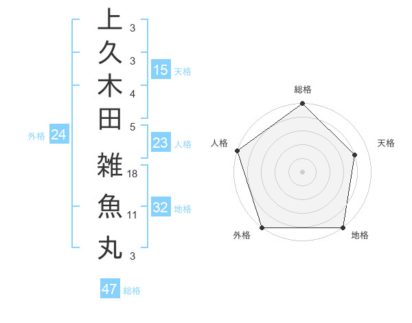 上久木田 雑魚丸さんを姓名の画数から五運を鑑定