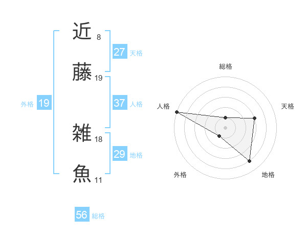 近藤 雑魚さんを姓名の画数から五運を鑑定