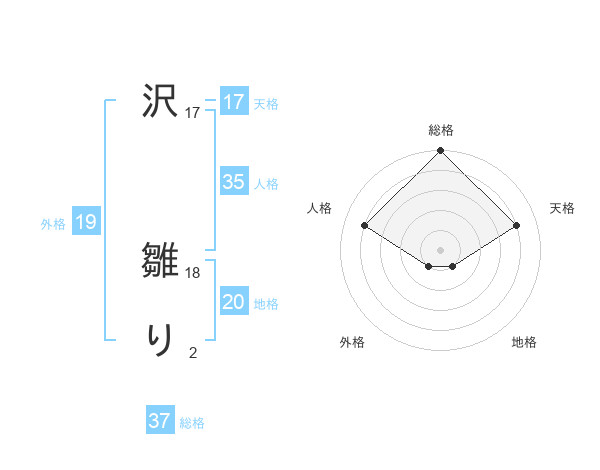 沢 雛りさんの地格は20画の1点!