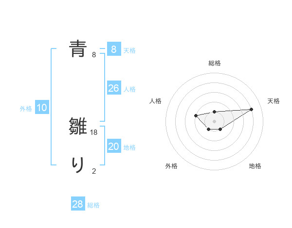 青 雛りさんの地格は20画の1点!