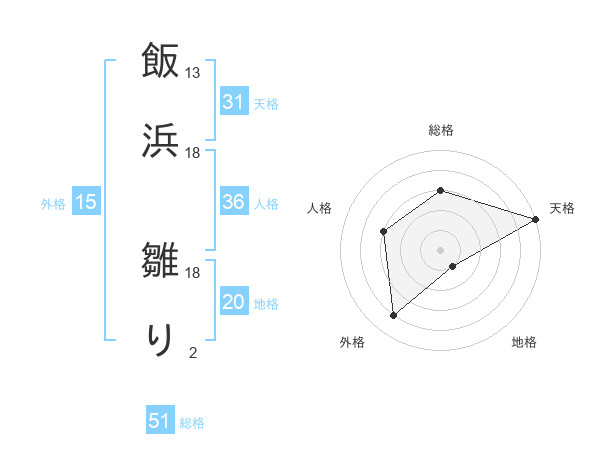 飯浜 雛りさんの総格は51画の3点!