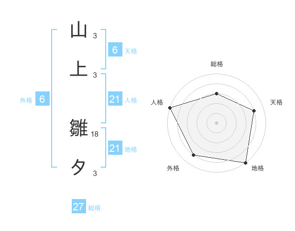 山上 雛タさんの総格は27画の3点