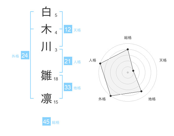 白木川 雛凛さんの総格は45画の4点