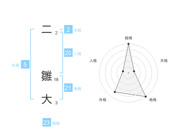 二 雛大さんの地格は21画の5点!
