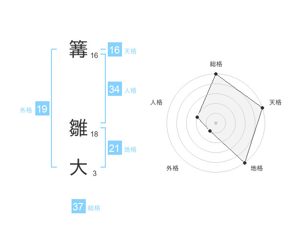 篝 雛大さんの天格は16画の5点!