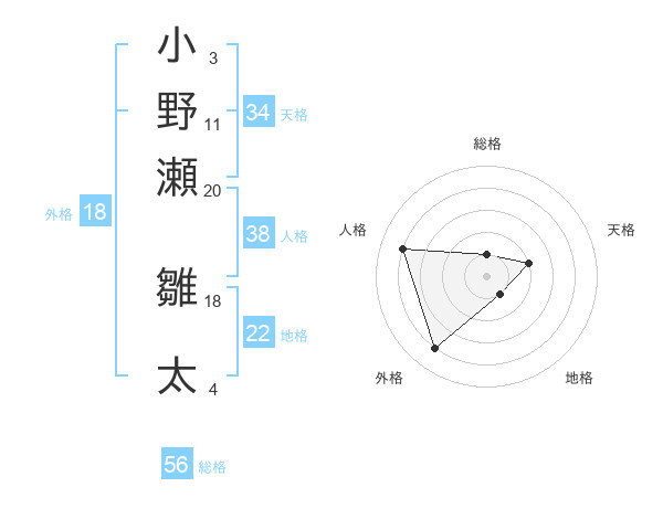 小野瀬 雛太さんを姓名の画数から五運を鑑定