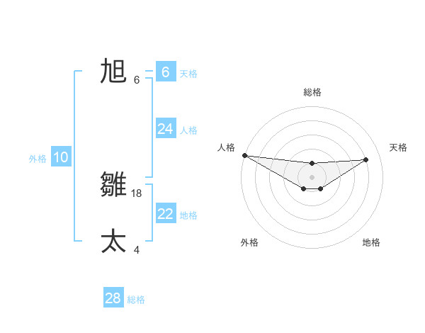 旭 雛太さんの総格は28画の1点!