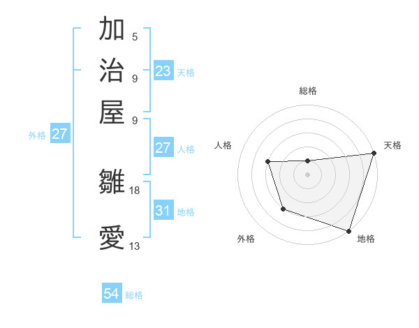 加治屋 雛愛さんの総格は54画の1点!