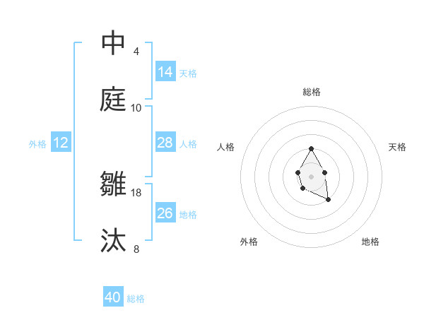 中庭 雛汰さんの総格は40画の2点!