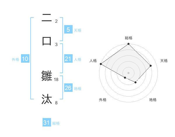 二口 雛汰さんを姓名の画数から五運を鑑定