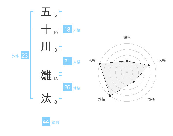 五十川 雛汰さんを姓名の画数から五運を鑑定