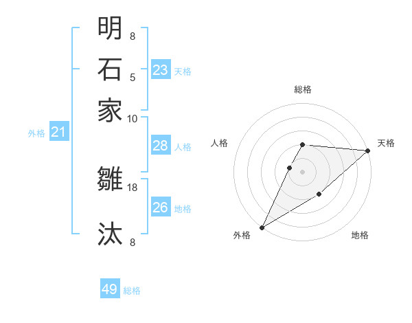明石家 雛汰さんを姓名の画数から五運を鑑定