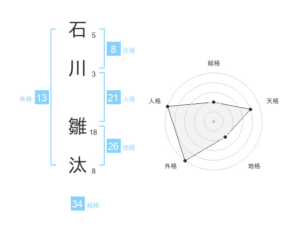 石川 雛汰さんを姓名の画数から五運を鑑定