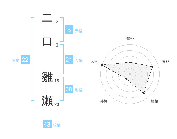 二口 雛瀬さんの天格は5画の4点!