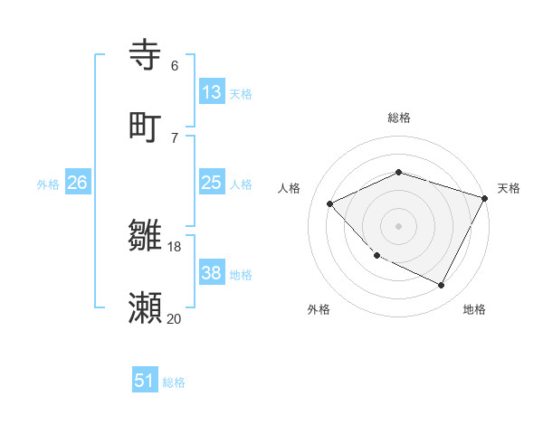 寺町 雛瀬さんの天格は13画の5点!