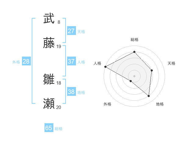 武藤 雛瀬さんの総格は65画の4点!