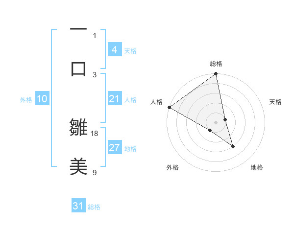一口 雛美さんの人格は21画の5点!