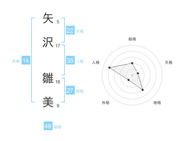 矢沢 雛美さんの天格は22画の1点!