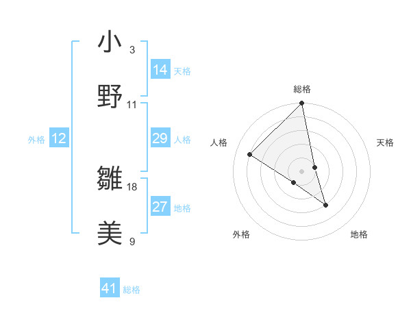 小野 雛美さんの人格は29画の4点!
