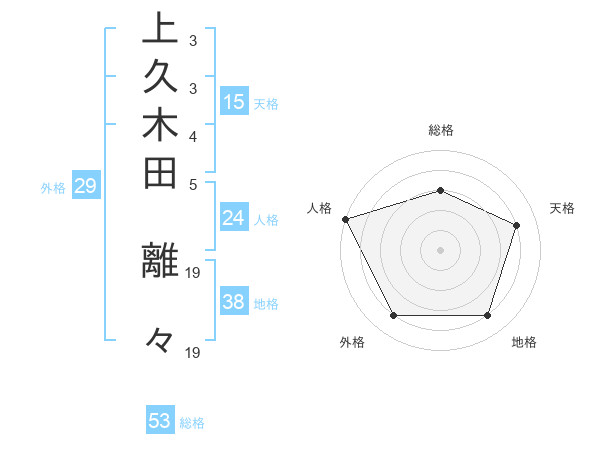 上久木田 離々さんの外格は29画の4点!