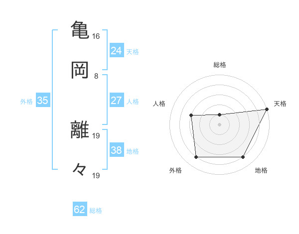 亀岡 離々さんを姓名の画数から五運を鑑定